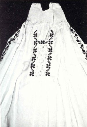Zu den ältesten Überlieferungen gehören die „urtrachtlichen“ Kleidungsstücke – sie wurden im 12. Jahrhundert aus der deutschen Urheimat mitgebracht: Dazu gehören das Frauenhemd mit der „Gereihsel“ genannten Faltenstickerei, der „Busenkittel“, ein aus Leinen gewebter und in Falten gelegter Tragmiederrock sowie das „Knüpftuch“, das dem ahd. houbit-tuoch entspricht und um Kopf, Hals und Schultern gelegt wird und in letzter Zeit noch in Deutsch-Weißkirch und Rode getragen wurde.